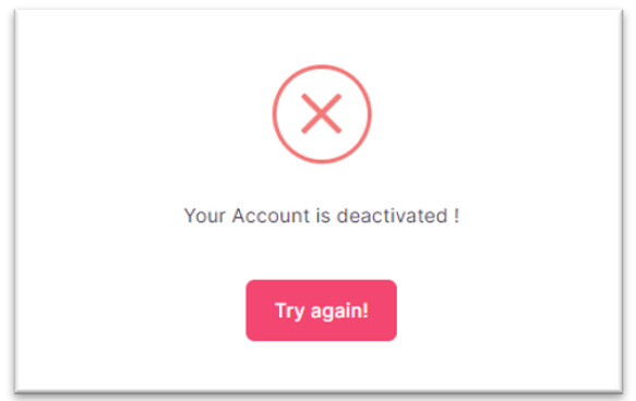 Step 2: Upon provision of your admin credentials, you will see the pop-up banner informing you that your account is currently deactivated.