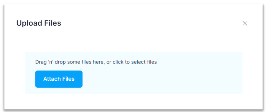 Step 2: A pop up entitled Upload Files is displayed, click on the Attach Files button to browse for your respective audio. Optionally, you can drag and drop a file into the upload area.